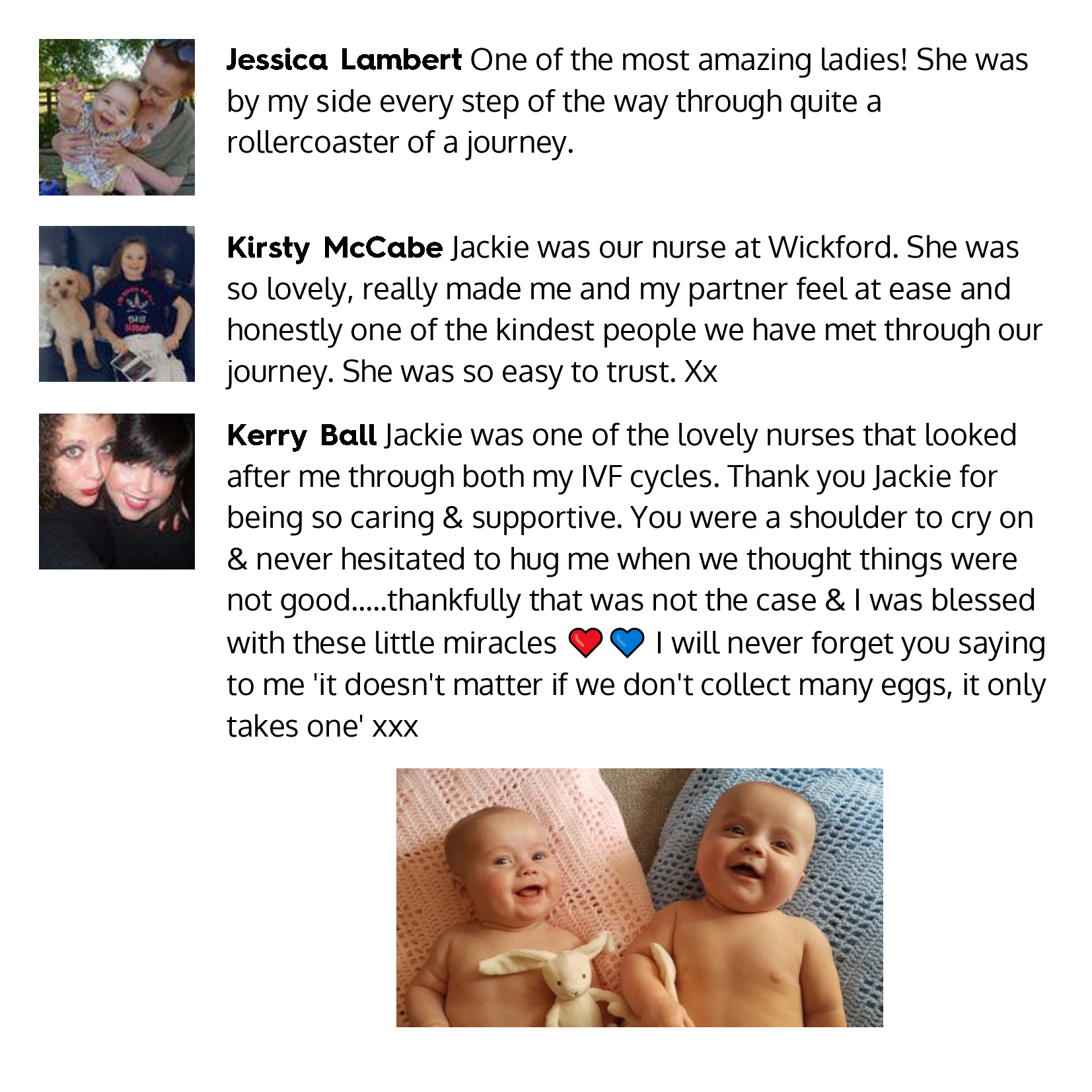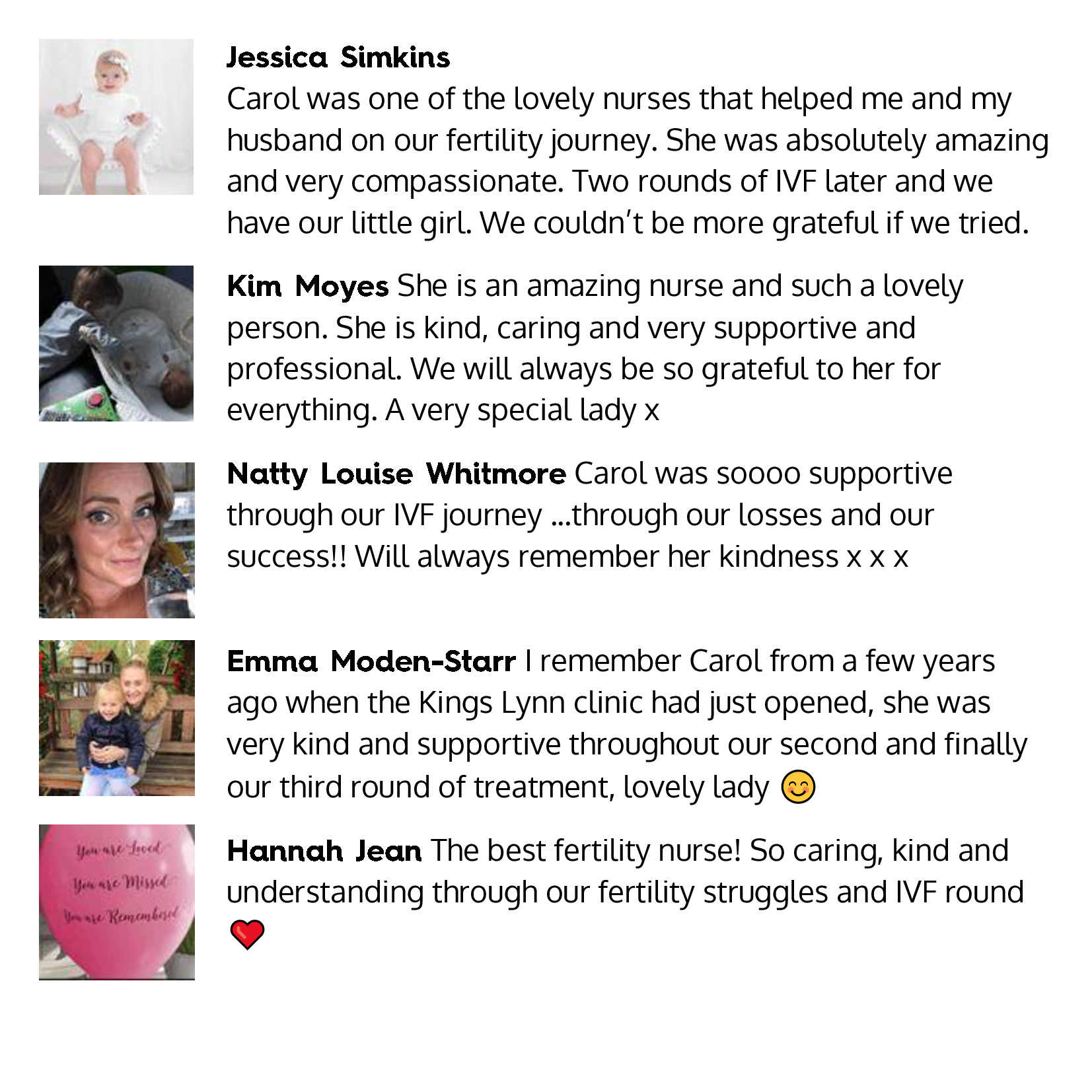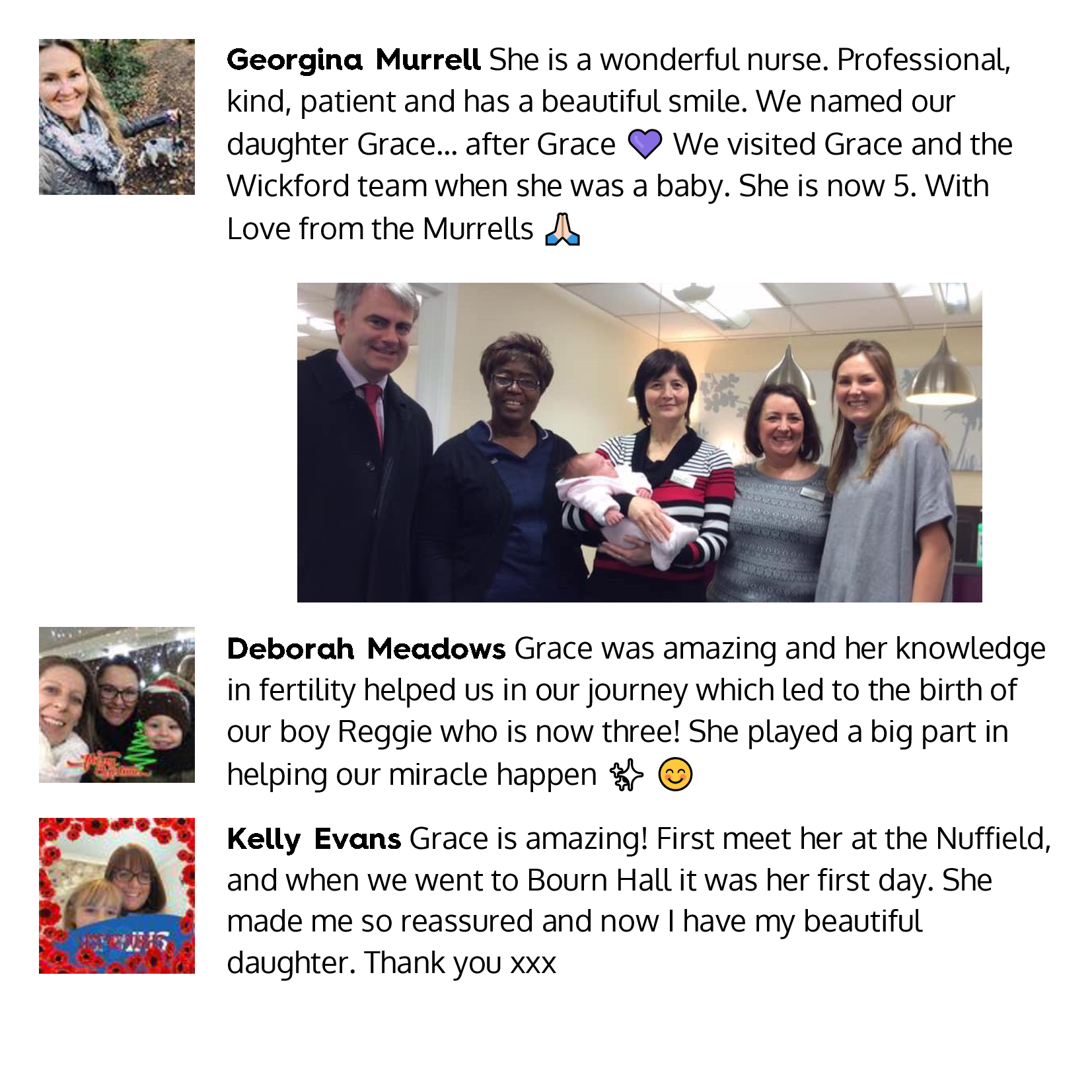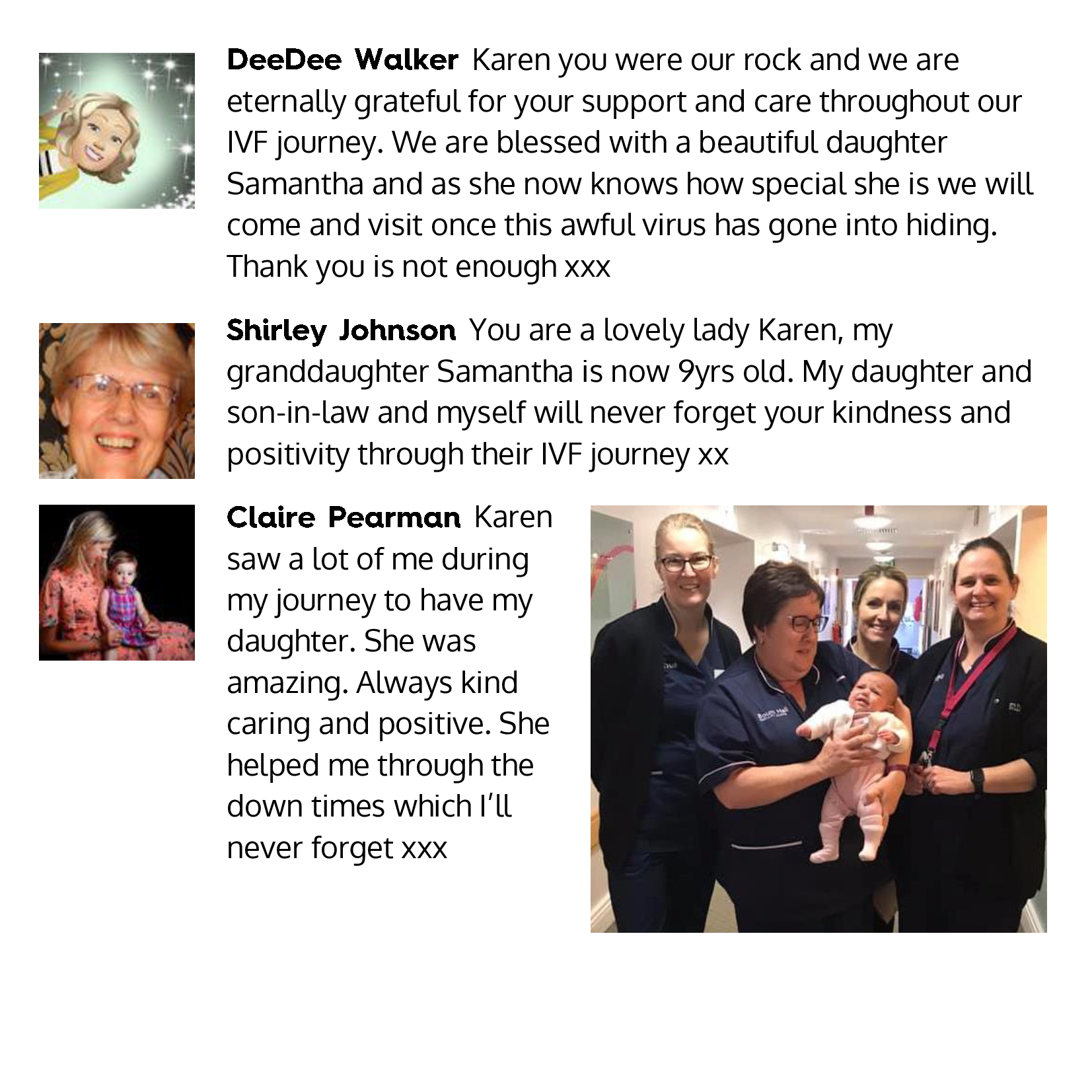 We invited a number of our nurses to tell us about their work at Bourn Hall. These ‘behind the scenes’ stories encouraged some heart warming responses from patients, giving a special insight into the fertility journey we take together. We share a few of these below (Click on the pictures to read the nurses stories).