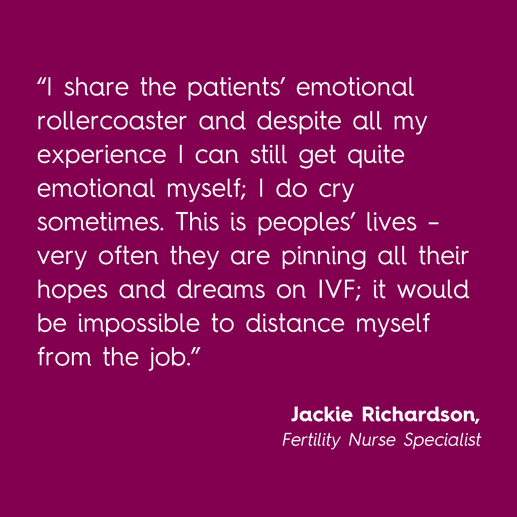 We asked a number of our nurses to tell us about their work at Bourn Hall – these ‘behind the scenes’ stories encouraged some heart warming responses from patients – together they give a special insight into both sides of the fertility journey.